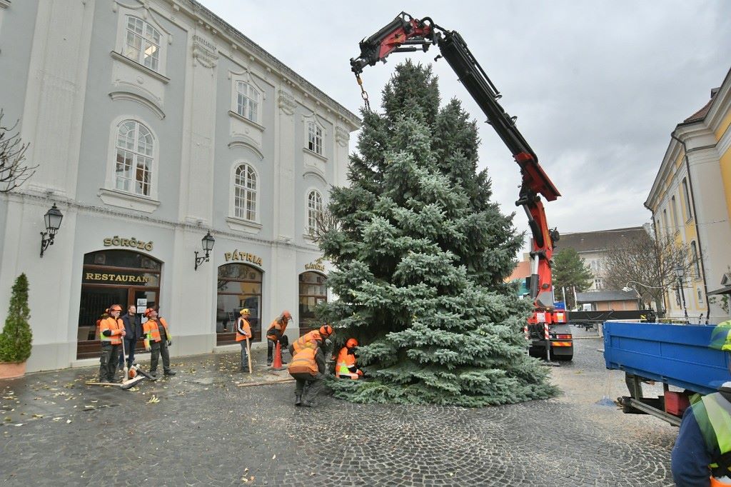 Székesfehérvár idei karácsonyfája a Liszt Ferenc utcán át érkezett meg a Városház térre. Az eseményre kiérkező óvodások és kisiskolások igencsak elámultak, amikor a másfél-két tonnás fa a levegőbe emelkedett. Az ezüstfenyő befaragása éppen úgy zajlott, mint karácsonykor a családok esetében, csak éppen itt láncfűrésszel faragták megfelelőre a törzset, majd a daru a helyére engedte a fát, amit hatalmas ékekkel is rögzítettek a foglalatba, hogy biztonságosan álljon. A profi produkciót, és persze a gyönyörű fát hatalmas tapssal honorálták a műveletet tátott szájjal végignéző gyermekek.