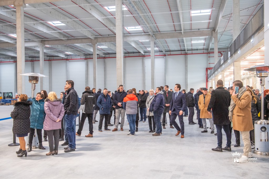 A program végén Pap László és Cserta Róbert cégvezetők, valamint dr. Cser-Palkovics András polgármester ünnepélyes szalagátvágással adták át a csarnokot.