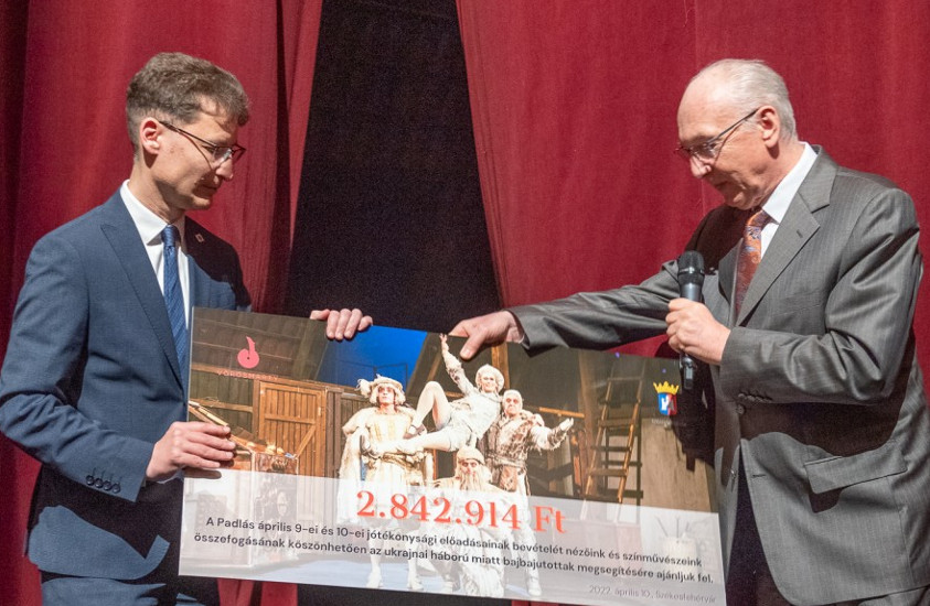 A Vörösmarty Színház, mint a közönség színháza mindig is fontosnak tartotta, hogy elesetteken, bajbajutottakon lehetőségeihez mérten segítsen. Ennek jegyében, az Ukrajnából érkező menekültek támogatása érdekében jótékony céllal A padlás című előadást tűzték műsorra április 9-én és 10-én. A két előadásra támogatói jegyeket válthattak a nézők 3500 és 5000 forint értékben. A két teltházas előadás résztvevői nemcsak színházi élményhez juthattak, hanem jó ügyet szolgáltak. A Székesfehérvárról és a megyéből érkezők segítő szándékáért mondott köszönetet a vasárnap délutáni előadást megelőzően dr. Szikora János. A Vörösmarty Színház igazgatója ekkor adta át a jótékonysági előadásokból befolyt 2.842.914 forintot jelképező csekket Székesfehérvár polgármesterének. Dr. Cser-Palkovics András a színház valamennyi dolgozójának megköszönte a nemes felajánlást, és köszönetet mondott a nézőknek, hogy a támogatói jegyek vásárlásával közel hárommillió forinttal járultak hozzá az Ukrajnából a háború elől menekülők támogatásához. „Óriási összefogást tapasztaltunk az első pillanattól kezdve a civil és egyházi szervezetek, az önkormányzati intézmények, az állami hatóságok, hivatalok részéről, hogy az ideérkezőknek segítséget, támogatást tudjunk nyújtani. Jó volt megtapasztalni, hogy képesek vagyunk összefogni.”