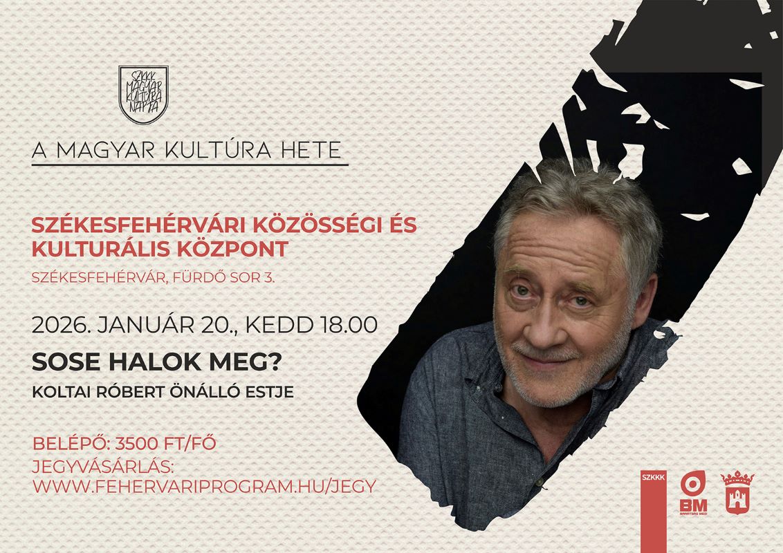 Irodalmi és zenés estekkel, valamint új magyar filmmel ünnepli a magyar kultúra napját a Székesfehérvári Közösségi és Kulturális Központ (SZKKK) 2026. január 20–24. között. Az intézmény Fürdő sori épületében január 20-án, kedden Koltai Róbert, 21-én, szerdán Kautzky Armand és Hűvösvölgyi Ildikó, 24-én, szombaton pedig Makranczi Zalán estjét láthatja a közönség, míg a Barátság mozi január 22-én, csütörtökön a Magyar menyegző című filmet vetíti.