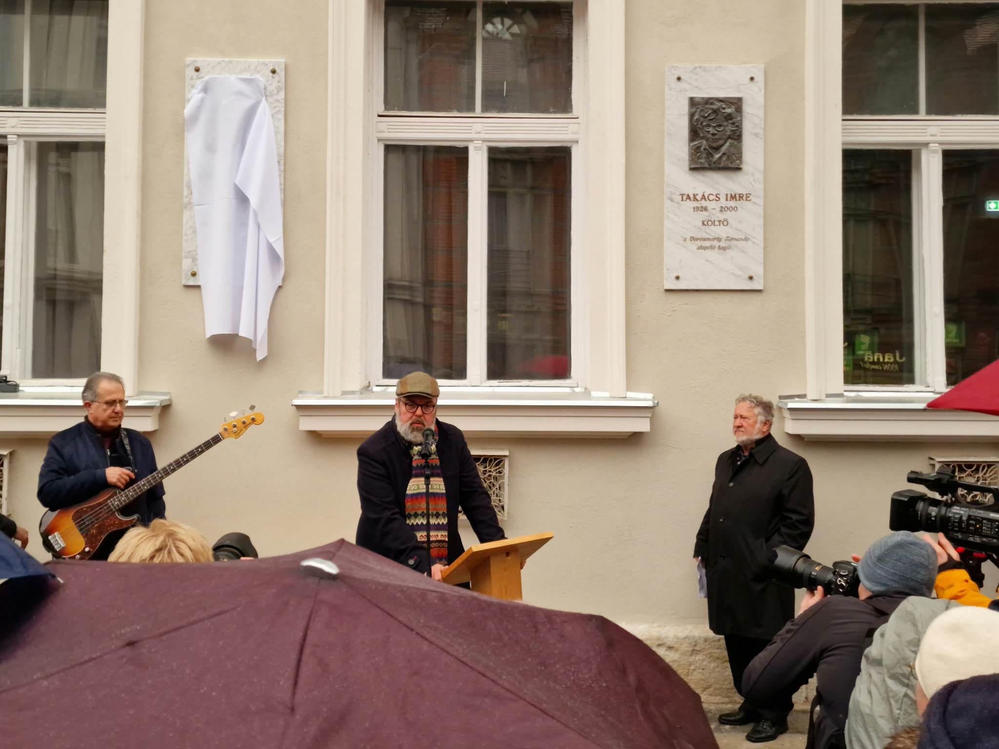 A felszólalások után az emléktáblánál a Vörösmarty Társaság vezetői a megemlékezés virágait, az Önkormányzat nevében pedig Lehrner Zsolt alpolgármester és Horváth Miklós Csaba képviselő koszorút helyezett el.