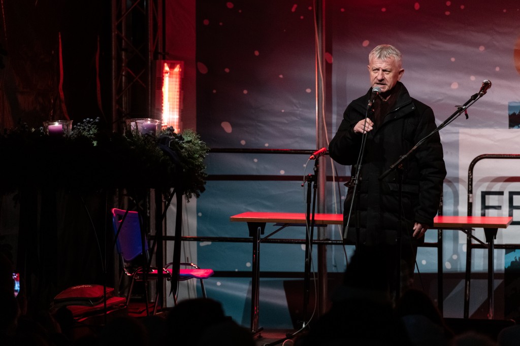 A harmadik adventi vasárnap talán leginkább várt produkciójára zsúfolásig megtelt a tér: Karácsony János „James” és Heincz Gábor „Biga” duója kínált különleges zenei élményt. Karácsony János, az LGT legendás gitárosa, zeneszerzője és énekese egy másik generáció karakteres hangjával, Heincz Gáborral közösen hozta el Fehérvárra az ikonikus dalok ünnepi, bensőséges változatait. A legismertebb LGT- és Generál-slágerek mellett több saját szerzemény is felcsendült ezen az adventi estén.