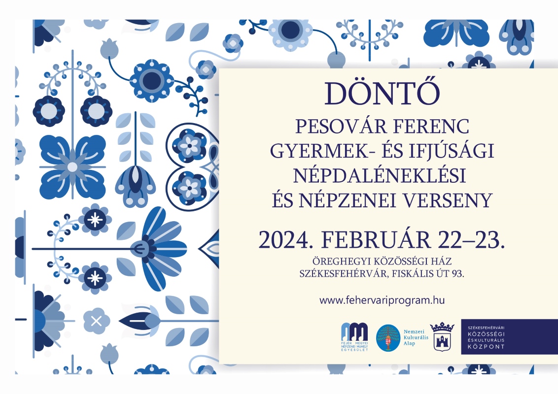 Véget értek a Pesovár Ferenc Gyermek- és Ifjúsági Népdaléneklési és Népzenei Verseny válogatói: a hét területi bemutató után két megyei döntőn mutatkoznak be a tehetséges ifjú énekesek és népzenészek. Az alsósok február 22-én, csütörtökön, a felsősök és középiskolások pedig február 23-án, pénteken lépnek a zsűri és közönség elé az Öreghegyi Közösségi Házban. Az esemény mindkét napon 14 órakor kezdődik és ingyenesen látogatható.