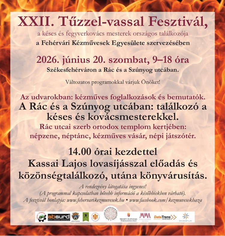 A 22. alkalommal rendezik meg  Székesfehérváron a Tűzzel-vassal Fesztivált. Június 20-án, szombaton bemutatók, vásári forgatag, fegyverbemutatók és gyermekprogramok is várják a látogatókat a Rác és a Szúnyog utcában.