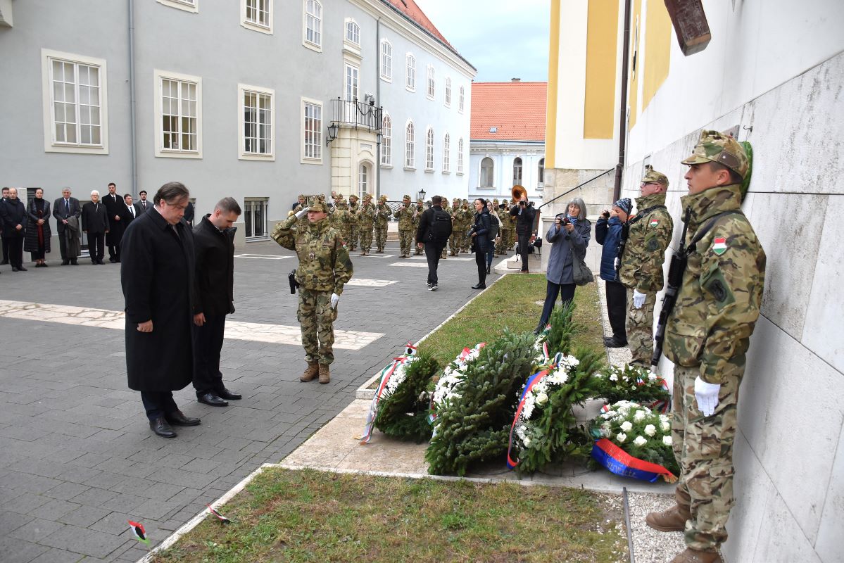 A Szent István-székesegyház ‘56-os emlékkeresztjénél néma koszorúzással rótták le tiszteletüket a vármegye és a város vezetői október 23-án a 69 évvel ezelőtti forradalom és szabadságharc hősei előtt. A Vörösmarty Színházban dr. Cser-Palkovics András polgármester és dr. Molnár Krisztián vármegyei közgyűlési elnök osztotta meg gondolatait az emlékezőkkel, akik az 56-os szín című drámát is megnézhették.