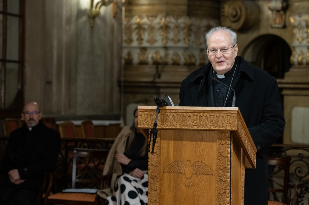 Dr. Erdő Péter bíboros, prímás elismerését fejezte ki a megújult területű Székesfehérvári Egyházmegye két legutolsó püspökének, Takács Nándornak és Spányi Antalnak az alkotó működése iránt. „Az intézmények jó része, az épületek megújulása, a múlt értékelése és az egészséges egyházmegyei öntudat kimunkálása éppúgy az ő fáradozásukat dicséri, mint a hit továbbadásának megújuló elkötelezettsége, amely lassan, valóban megmozgatja az élettelen anyagot is. Ennek a kiállításnak a megtekintése adjon erőt és lendületet mindazoknak, akik katolikus hitük alapján tájékozódnak a világban, és legyen büszkeség forrása Székesfehérvár minden lakója számára.” – zárta megnyitó beszédét dr. Erdő Péter bíboros, prímás.