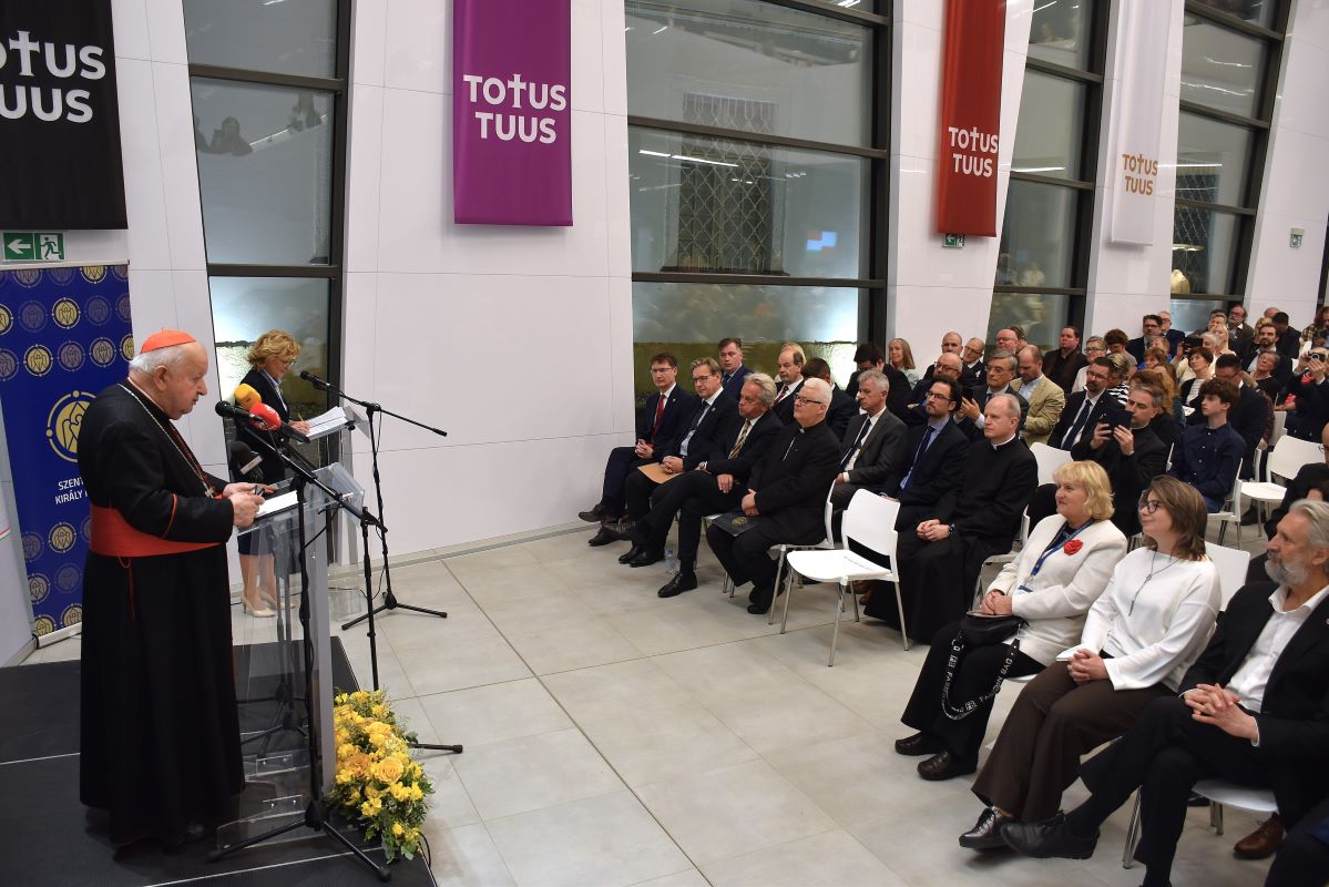 A bíboros a tárlat címére, a Totus Tuus (Teljesen a Tiéd) jelmondatra is magyarázatot adott: amikor 8 évesen meghalt Karol Wojtyła édesanyja, a kisfiút az édesapja elvitte a kálváriasorra. Ott látta meg a Szűzanya képét, s ekkor a későbbi pápa azt mondta: „Te leszel az én édesanyám, s én teljesen a tiéd vagyok!” A pápa hitéletében is ezt a jelmondatot követte, teljes elköteleződéssel Isten szolgálata iránt, Mária, Krisztus Anyja képmására. II. János Pál pápa egykori titkára, Krakkó emeritus érseke, aki a Szentatyát 1991-es és 1996-os magyarországi apostoli útjára is elkísérte, arról is beszélt, hogy a Közép-Kelet-Európában uralkodó kommunista rezsim sötét éveiben II. János Pál támogatta a szabadság és szuverenitás visszaszerzése érdekében tett erőfeszítéseket, ami jelentősen hozzájárult a nemzetek ezen iga alóli felszabadításához. „Megrendít minket a szent pápáról Magyarországon őrzött emlékezet, és ennek az emlékezetnek a jele a mai napon megnyitásra kerülő kiállítás is, mely sokakat arra ösztönöz, hogy jobban megismerjék a hozzánk oly közel álló pápa életét, tanítását. Azét, aki átvezette az egyházat a keresztény hit harmadik évezredébe, aki a család és az ifjúság pápája volt, a megfogant élet pápája és védelmezője, az emberi méltóság és a béke pápája. Higgyétek el, hogy II. János Pál szerette Magyarországot, szeretett titeket, s ezek a csodálatos beszédek ma őt is idehívták, ma ő is itt van velünk!” – zárta üzenetét Stanisław Dziwisz.