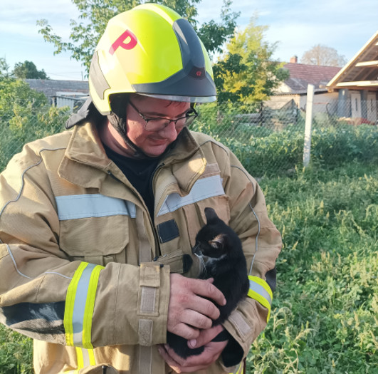 Pázmándon egy kiszáradt kútban várta a segítséget egy kismacska. A Fejér megyei műveletirányító ügyelet az önálló beavatkozásra jogosult pázmándi önkéntes tűzoltókat riasztotta, akik létrán mentek le a fogságba került állathoz, és felhozták a nyolc méteres mélységből.