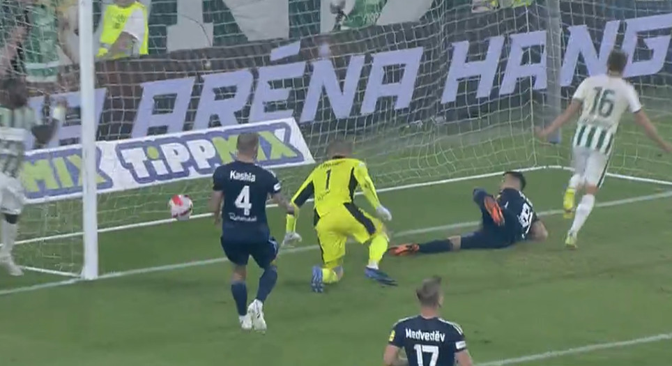A legvégén már szerencséje sem volt az FTC-nek, Civic megpattanó lövése (az alábbi képen) a bal oldali kapufáról vágódott ki a hosszabbításban, pedig ott már verve volt a kapus és a védelem is csak szemmel verte a játékszert…