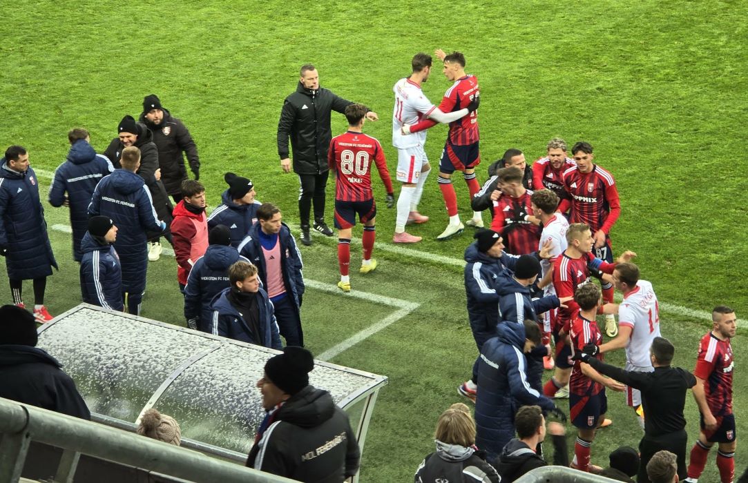 A végéig sem változott a helyzet, a legnagyobb izgalmat az okozta, amikor egy, az oldalvonalnál kipattogó labdát Pető Tamás megfogott, és amikor dobta volna oda az egyik játékosnak, a lendületből érkező Szentlőrinc-futballista, Milovanovics felöklelte a trénert. Ebből hatalmas adok-kapok lökdösődés és szájkarate alakult ki. Ketten sárgát kaptak.