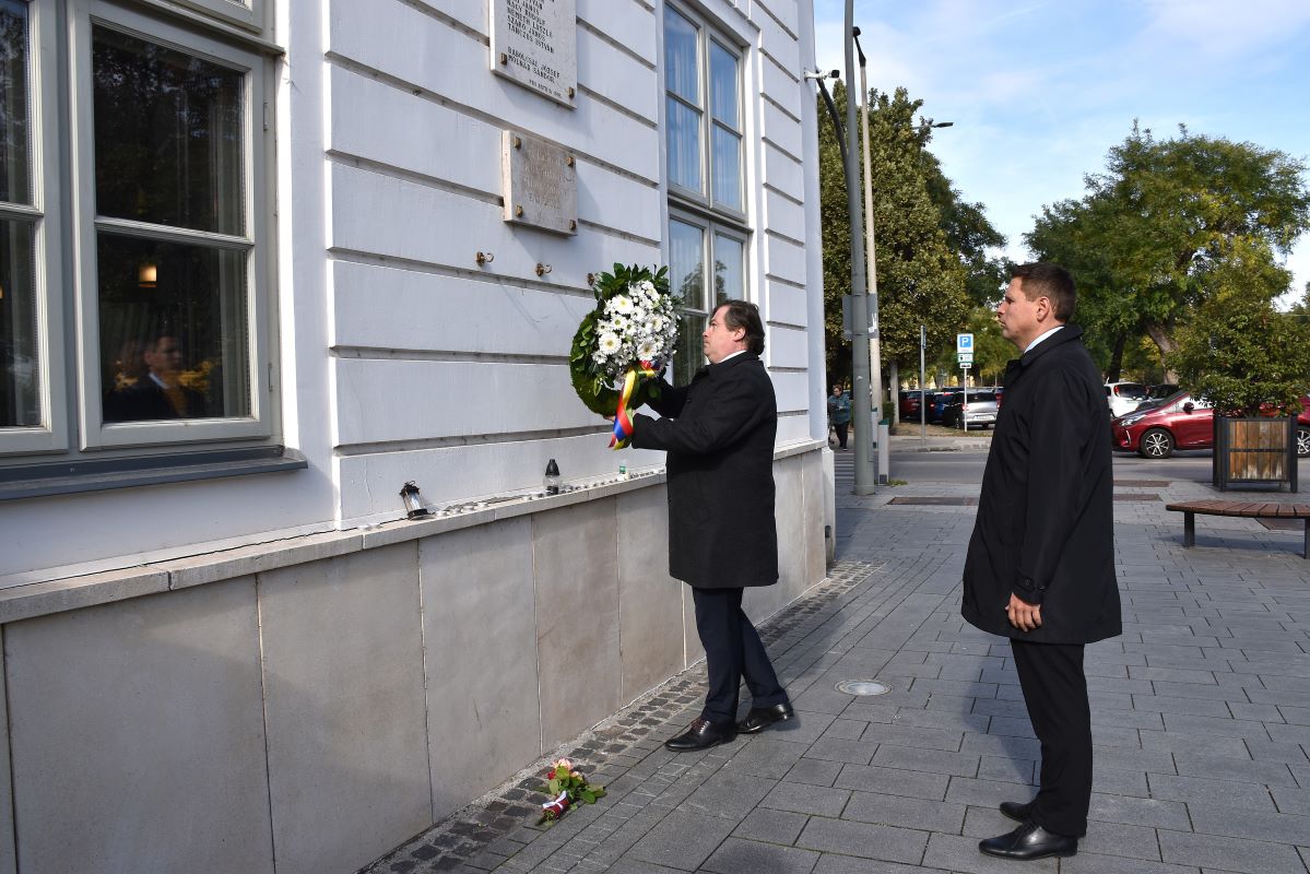 A Zichy ligetben, Keszei István költő emléktáblájánál dr. Kovács Zsoltné önkormányzati képviselő, Lehrner Zsolt alpolgármester és dr. Szabó Tibor vármegyei közgyűlési alelnök hajtott fejet, majd helyezte el az emlékezés koszorúját.