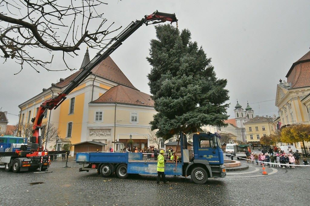 Székesfehérvár idei karácsonyfája a Liszt Ferenc utcán át érkezett meg a Városház térre. Az eseményre kiérkező óvodások és kisiskolások igencsak elámultak, amikor a másfél-két tonnás fa a levegőbe emelkedett. Az ezüstfenyő befaragása éppen úgy zajlott, mint karácsonykor a családok esetében, csak éppen itt láncfűrésszel faragták megfelelőre a törzset, majd a daru a helyére engedte a fát, amit hatalmas ékekkel is rögzítettek a foglalatba, hogy biztonságosan álljon. A profi produkciót, és persze a gyönyörű fát hatalmas tapssal honorálták a műveletet tátott szájjal végignéző gyermekek.