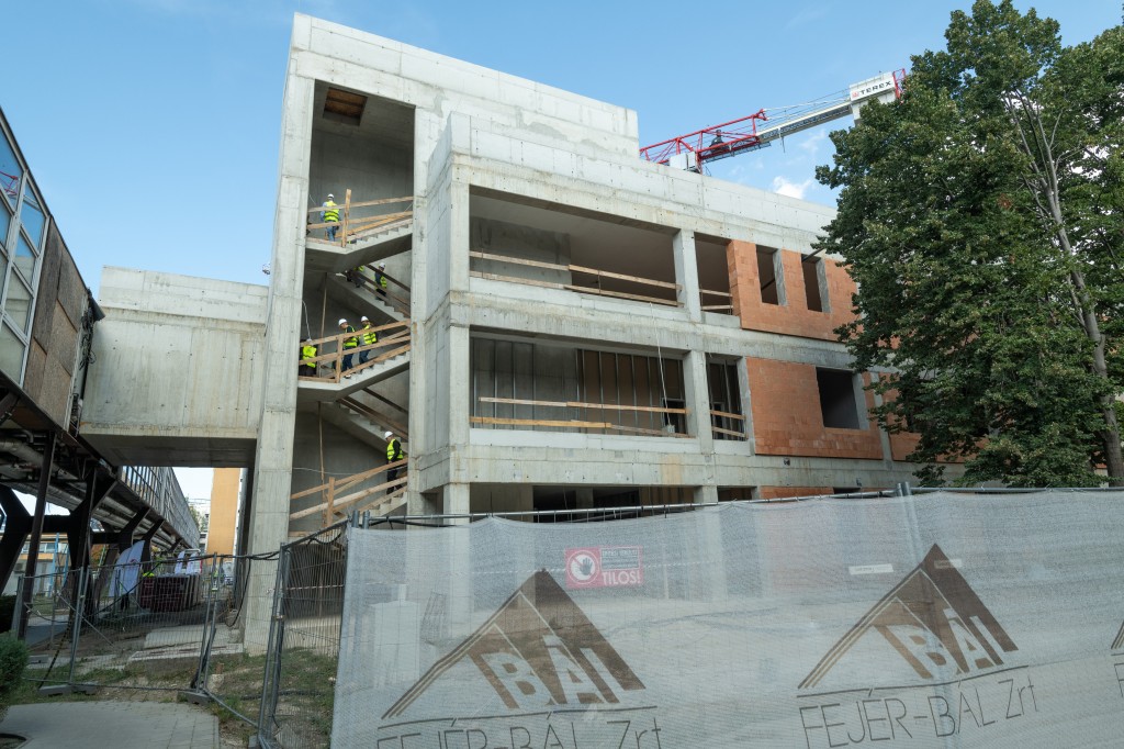 A bokrétaünnepség keretében helyszíni bejárást tartottak az épülő új kórházi tömbben. A már szerkezetileg kész épület első és második szintjén jelenleg is zajlik a gipszkarton falszerkezet kiépítése, valamint gépészeti és elektromos alapszereléseket végeznek a szakemberek. A harmadik és negyedik szinten falazási és vakolási munkálatok zajlanak, továbbá készül a párazáró falazat is. Az új épület átadására várhatóan 2024. II. negyedév végén kerül sor.