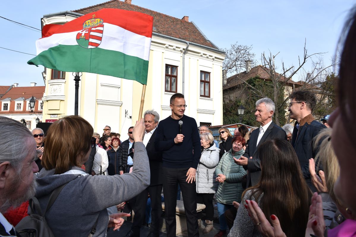 Szijjártó Péter kiemelte: ahhoz, hogy kimaradjunk a háborúból, hogy ne jöhessenek ide továbbra sem illegális migránsok, hogy maradjanak a fiataloknak, az időseknek, az édesanyáknak és a családoknak szóló kedvezmények, valamint az olcsó rezsiárak, egy biztos választás van: Orbán Viktor és a jelenlegi kormány, a Fidesz-KDNP kormány.