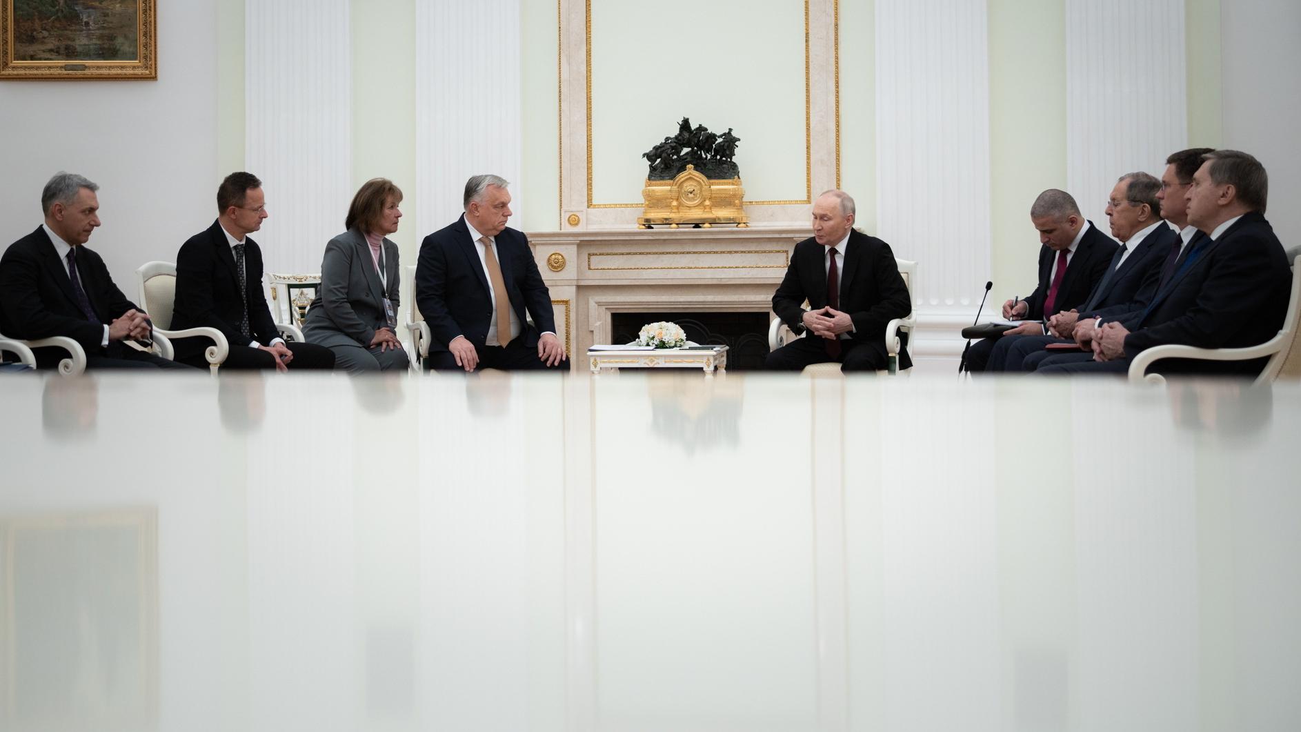 Üdvözlő szavaiban Putyin hangot adott megelégedésének, hogy a kétoldalú kapcsolatok minden mai nehézség ellenére megmaradtak és tovább fejlődnek. Jól tudjuk, hogy történelmünkben különböző időszakok voltak, de a kapcsolataink a pragmatizmusra, a kétoldalú kapcsolatok fejlesztésének pragmatikus megközelítésére épülnek – fogalmazott. „Önnel személyesen régóta ismerjük egymást, és tudom, hogy ön a munkájában elsősorban hazája, Magyarország és a magyar nép érdekeit képviseli” – mondta.