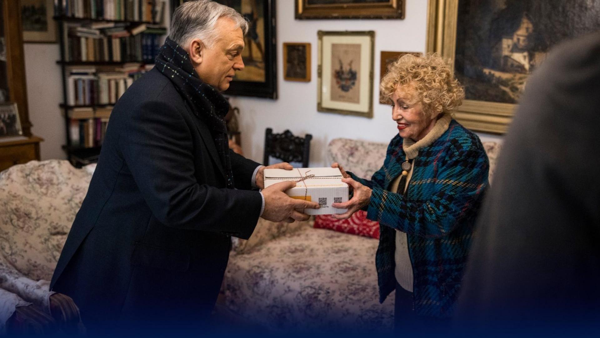 Az átadásról készült videó szerint a kormányfő egy csokor virággal és a Gondosóra-csomaggal érkezett Ildikóékhoz.