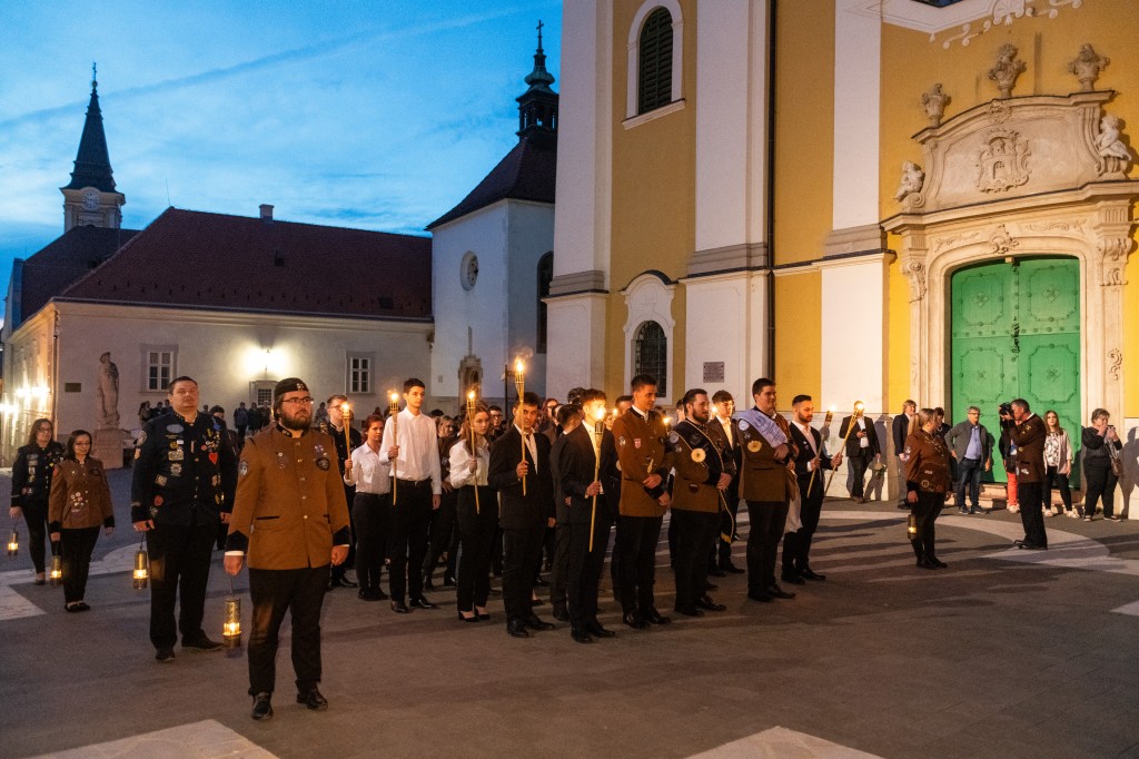 Akik itt vannak, hosszú utat követően érkeztek egy nagyon fontos fejezethez az életükben – kezdte köszöntőjét a Bazilika előtti téren dr. Cser-Palkovics András polgármester. A városvezető hálásán köszönte, hogy a diákok továbbra is őrzik a selmeci hagyományokat, ez pedig annak is köszönhető, hogy néhány éve a Geósok kiálltak a szak mellett és a Geoinformatika Székesfehérváron maradt. Azt kívánta a végzősöknek, raktározzák el ezeket az élményeket, hogy évtizedekkel később is jó szívvel emlékezhessenek vissza erre a napra.