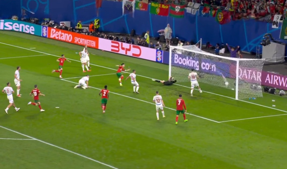 Az esti összecsapáson Portugália is megszenvedett Csehországgal, és itt is egy hajrágól döntött, 2-1-re nyertek Ronaldóék. A csehek szereztek vezetést a 61. percben első kapura lövésükkel, Provod révén, majd aztán 8 minutummal később a szinte végig hatalmas fölényben focizó portugálok egy öngóllal egalizáltak. Végül aztán – mikor máskor – a 92. percben a csereként beállt Neto passza és egy cseh védő gyenge tisztázása után az ugyancsak éppen előtte pályára küldött Francisco Conceicao pontos befejezésével hozta az igazságos győzelmet a luzitánoknak.